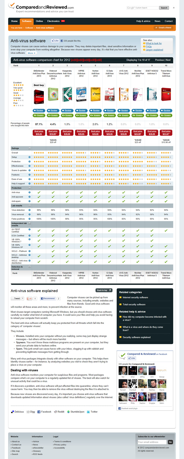 Facebook, 7Search, LookSmart, BitVertiser & InfoLinks.